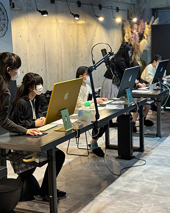 企画内容を動画にするために、必要な撮影のテクニックや音声マイク・配信機材の使い方を学びながら撮影します。